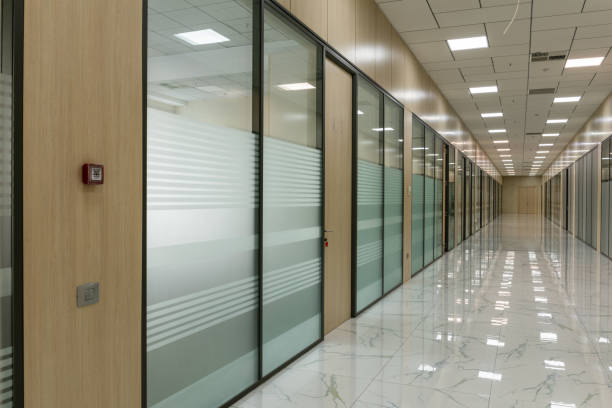 Cam bölmeler, doğal ışığın tüm ofis alanına yayılmasını sağlayarak enerji tasarrufu ve daha aydınlık bir çalışma ortamı sunar.